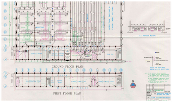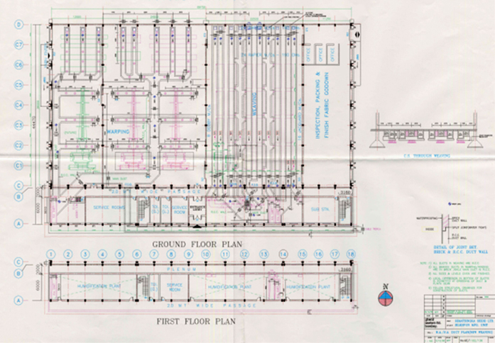 Industrial complex of spinning, weaving plants with administrative block, worker's welfare facilities, effluent treatment plant.