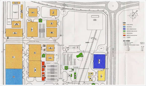 Master planning based on modular design. Modules for warehousing & offices designed as per needs & fabricated on site to save cost & time for construction.