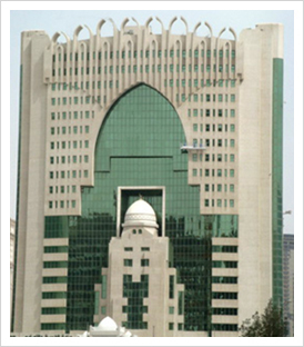 Upper floors: offices, Mosque on 10th floor, Helipad at top. |