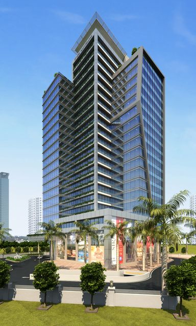 Building contains mall on three floors, Coporate offices above and 50 room hotel on upper floors with helipad on top. |